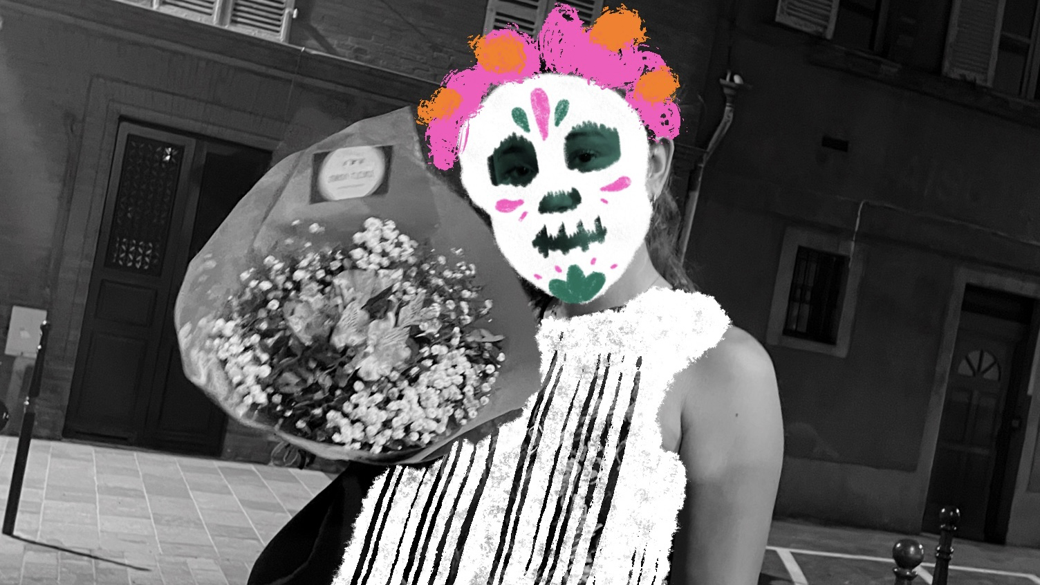 Venez participer à la création collective de costumes et masques blancs, faits de matériaux de récup’ et inspirés de l’esthétique du Día de Muertos. Entre dentelles fantomatiques et tissus oubliés, nous imaginerons ensemble des silhouettes étranges ou joyeusement macabres. Aucun niveau requis, toutes les mains sont bienvenues pour façonner cette déambulation mortelle, blanche et bien vivante !